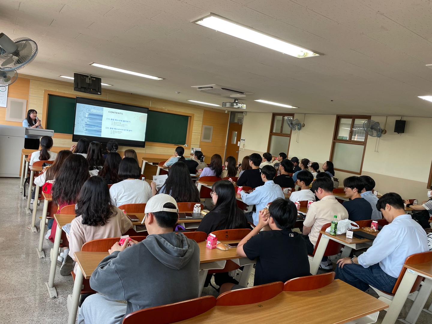 대전해든학교 특수교사인 이*란 선생님이 학교를 방문하여 특수교육이 이루어지는 다양한 학교현장의 모습과 특징을 소개해주셨습니다. 선생님은 특수학교, 특수학급, 특수교육원센터, 병원학교까지 모두 근무한 경험이 있는 자랑스런 키세인입니다. 일시 : 23/5/31 5:30-7:20 장소: 인302 참석 : 1~4학년