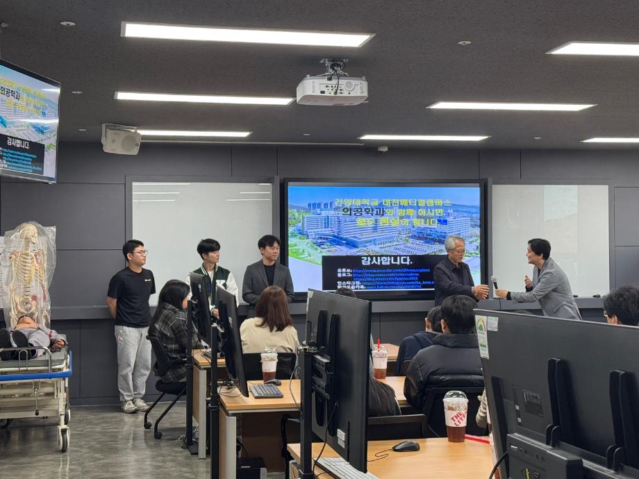 2025학년도 수시지원을 통한 신입생 분들 반갑습니다. 의공학과 학과장인 태기식 교수님의 학과소개와 4학년 선배들의 작품 전시, 의료공과계열 비전 설명회가 진행되었습니다. 신입생 여러분 모두 내년 학기부터 함께하면 좋겠습니다! |