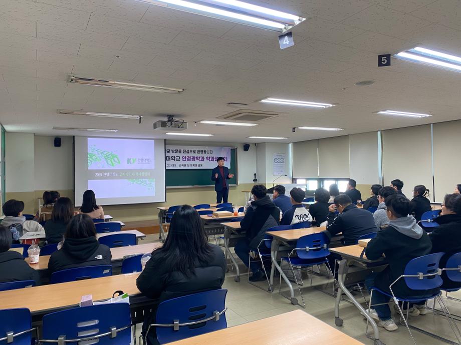 2024년 11월 23일 토요일에 수시전형 지원자 대상으로 건양대학교 안경광학과 학과설명회를 진행하였습니다. 재학생들의 학교생활 소개 및 졸업생들의 취업출구 소개, 건양대병원 안과검사실 견학 그리고 교수님들과 학부형님들과의 질의응답 시간을 통해 필요한 정보들을 많이 얻어가셨으리라 생각됩니다. 지원자 학생들 및 학부형님들 그리고 참여하신 교수님들, 재학생들, 졸업생들 모두 수고많으셨습니다. |