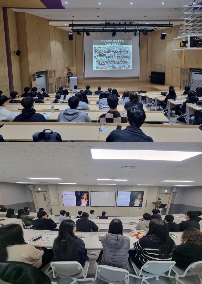 전공교육과정 설명 및 선배의 생생한 글로벌 연수 우수사례 발표를 시작으로, 학과 실습실과 시뮬레이션 센터, 그리고 건양대병원 안과검사실까지 이어지는 투어를 통해 예비 안보건 전문가로서의 자긍심과 비전을 키웠습니다.