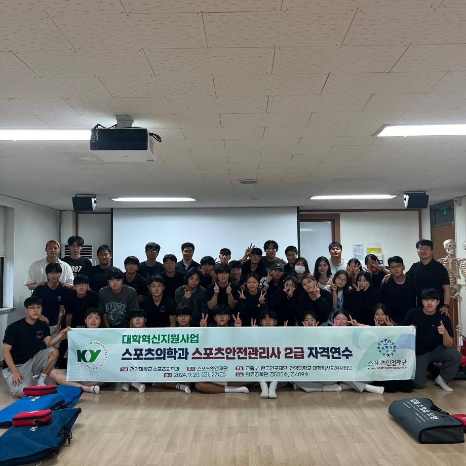 [스포츠안전관리사 2급 자격 과정] 안녕하세요. 건양대학교 스포츠의학과 학생회입니다! 2024년 9월 20일, 9월 27일 이틀 간 스포츠안전관리사 2급 자격 과정을 진행했습니다. 학교의 대학혁신지원사업의 예산 지원을 받고, 학생들의 교육비 등 일체 비용을 학교에서 지원을 받아 교육을 진행했습니다. 스포츠안전관리사는 스포츠 행사에서 필요한 기본 내용으로 대한 체육회를 비롯한 시군구 체육회에서 진행하는 스포츠행사에 안전 인력으로서 활동할 수 있는 자격 과정입니다! 본 자격과정은 스포츠안전재단에서 실시하는 과정으로 진행하였습니다. 앞으로도 스포츠의학과 학우들의 진로와 미래를 위한 자격과정 수 업들을 위주로 개최할 예정입니다. |