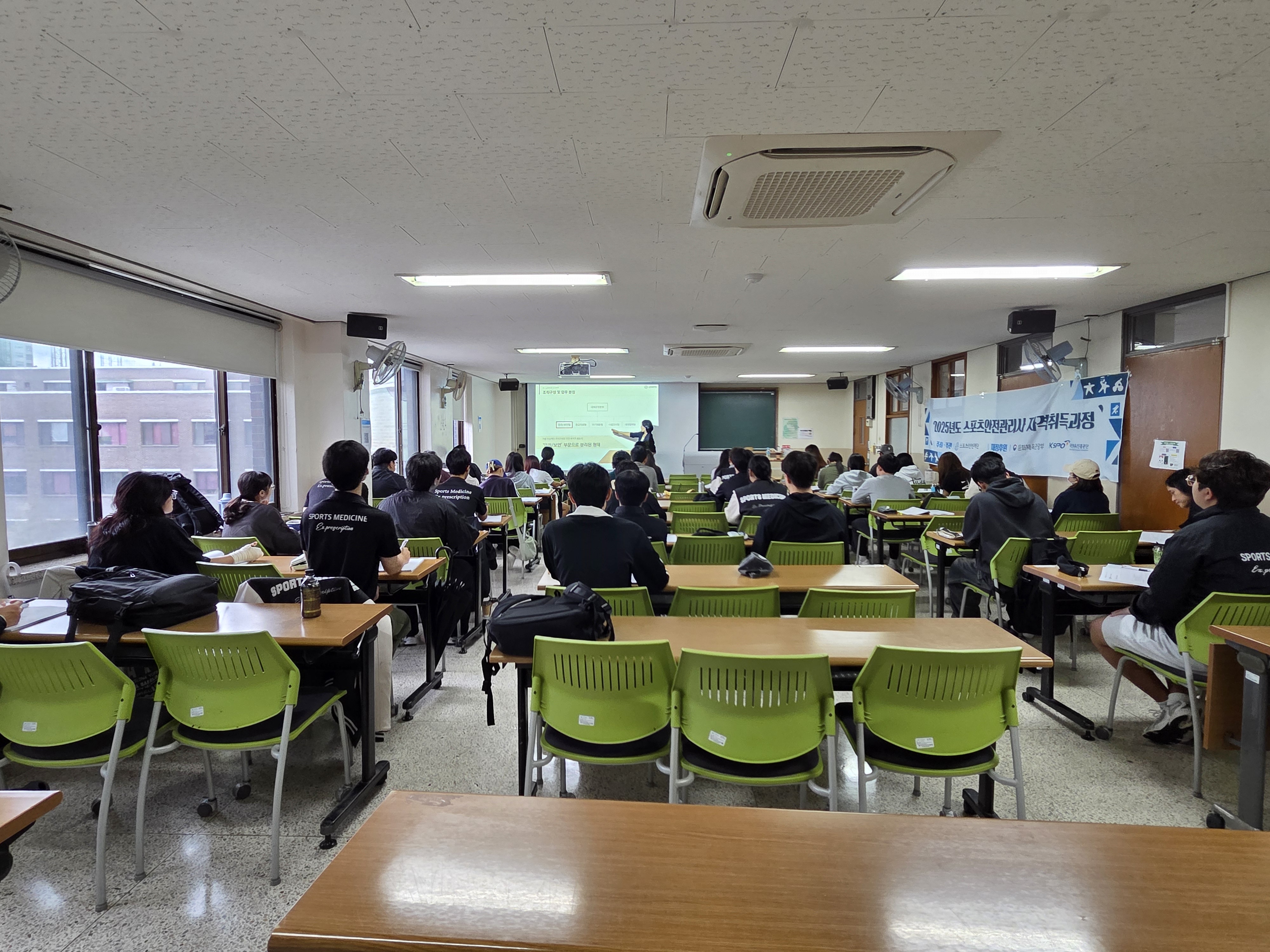 안녕하세요 건양대학교 스포츠의학과 학생회입니다! 2025년 10월 18일, 25일 이틀간 스포츠안전관리사 2급 자격과정을 학교의 대학혁신지원사업의 예산지원을 받고, 학생들의 교육비등 일체비용을 학교에서 지원받아 교육을 진행하였습니다. 이번 과정은 스포츠 현장에서 발생할 수 있는 안전사고 예방 방법과 응급 상황 대응 절차, 체육 시설 안전 점검 기준 등을 중심으로 교육이 진행되었습니다. 최종적으로 41명중 38명이 합격하는 매우 우수한 합격률을 기록했습니다! 또 이번과정을 통해 스포츠환경에서의 안전관리가 얼마나 중요한지 느낄 수 있었던 교육이었길 바랍니다!