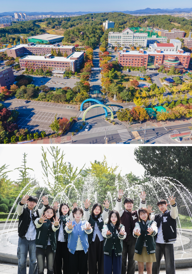 충남 논산에 소재한 건양대학교 글로컬캠퍼스 전경과 학생들.이미지 확대보기 충남 논산에 소재한 건양대학교 글로컬캠퍼스 전경과 학생들.
