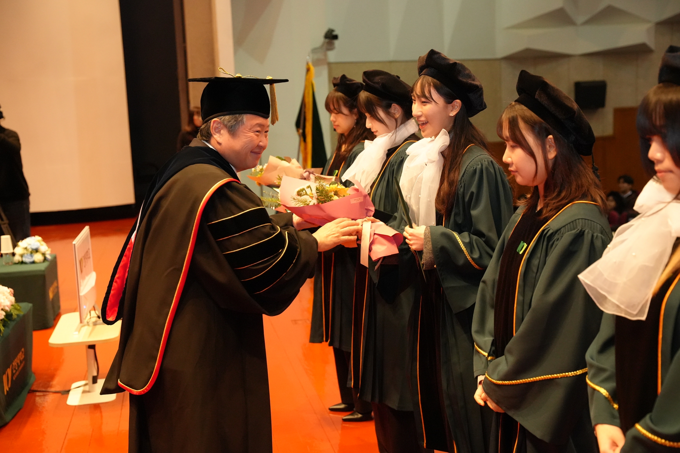 김용하 총장은 축사에서 “2022년 ‘Student First’ 철학을 바탕으로 학생 중심의 교육을 실천해 왔다. 이번 2025학년도 졸업생을 배출하는 자리는 저에게 매우 뜻깊은 순간이다”라며 “앞으로도 우리 대학은 학생들에게 더 많은 글로벌 경험과 기회를 제공하기 위한 해외 프로그램 유치에 전력을 다하고, 교육의 국제화 역량을 지속해서 강화 하겠다”고 강조했다.