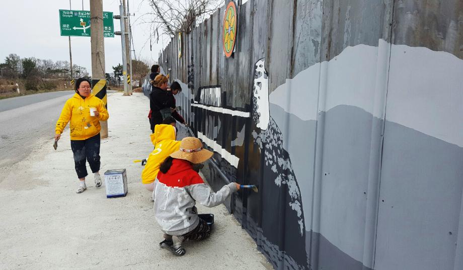 거리벽화 작업에 열중하고 있는 건양대 학생들 1.jpg