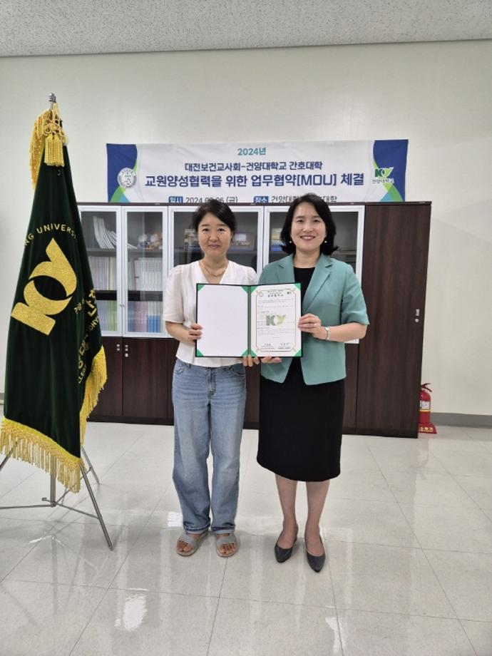 건양대학교(총장 김용하) 간호대학(학장 임효남)과 대전광역시 보건교사회(회장 서운희)가 지난 6일 건양대 메디컬캠퍼스 간호학관에서 교원양성 협력을 위한 업무협약을 체결했다.