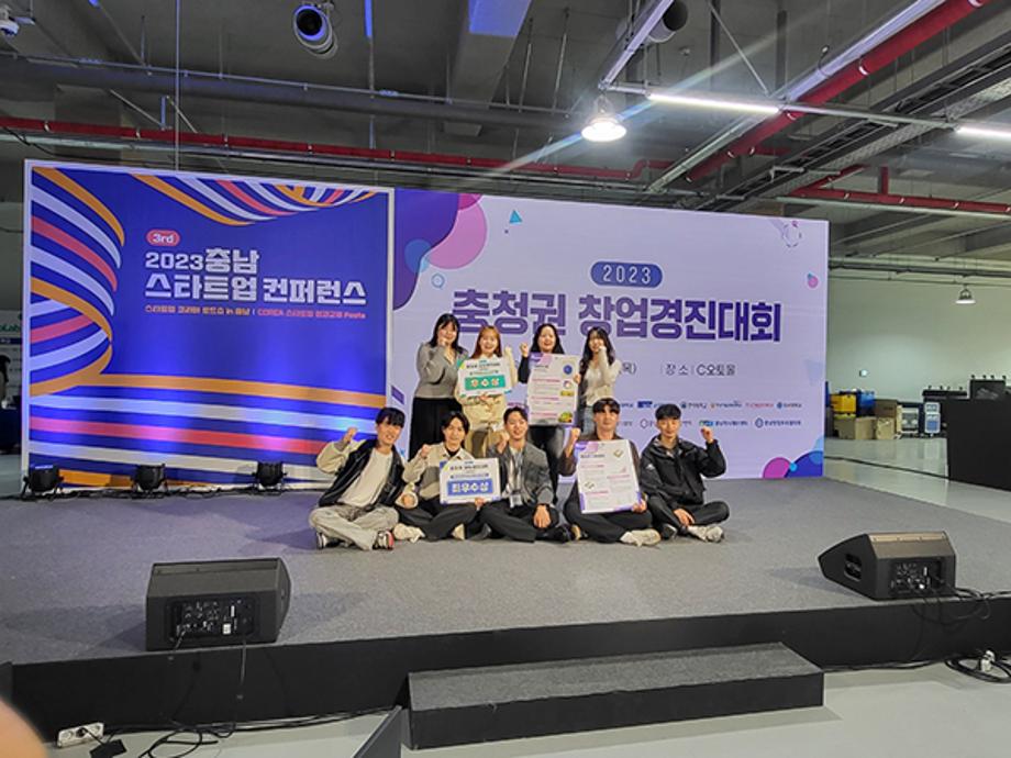 26일 열린 충청권 대학 창업경진대회에서 수상한 학생들의 기념사진.jpg