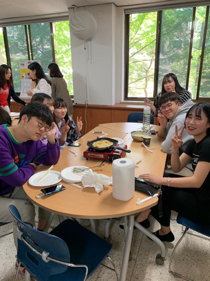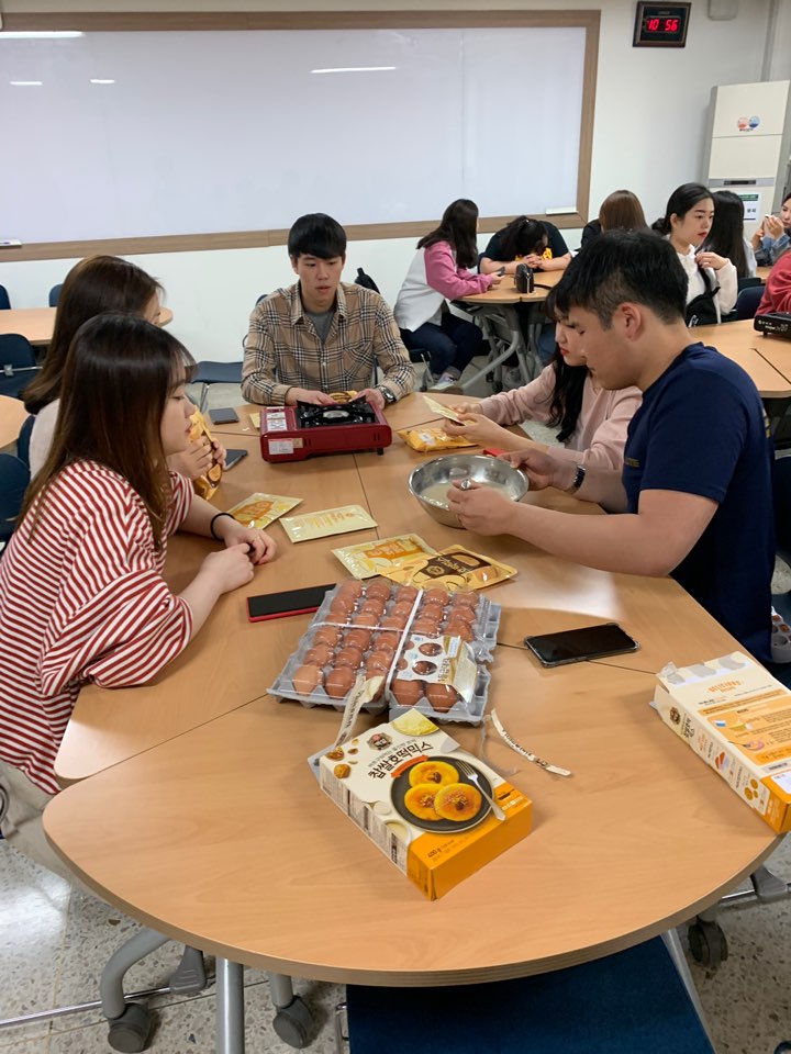 축제기간이었던 5월 8일 마케팅비즈니스학과는 단합 프로그램을 진행하였는데요 교수님과 마케팅비즈니스학생들이 모여 부침개와 호떡을 직접 만들고 나누어 먹으며 단합을 다지는 시간을 가졌습니다~ 교수님과 함께하는 모습! 부침개와 호떡을 만들었습니다!