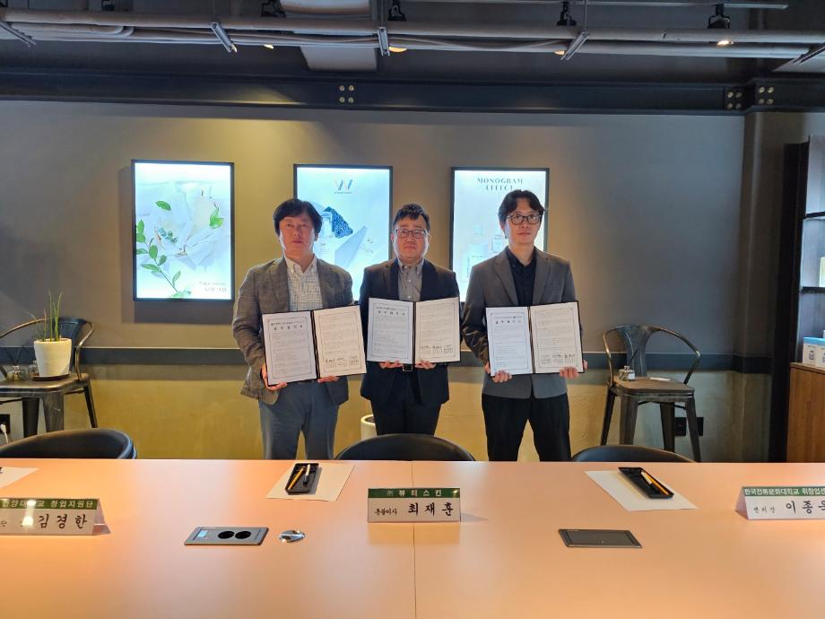 건양대학교(총장 김용하) 산학협력단(단장 홍영기)이 한국전통문화대학교 취창업센터(센터장 이종욱), ㈜뷰티스킨(대표 최범석·김종수)과 손잡고 학생창업 활성화를 위해 함께 힘쓰기로 했다.