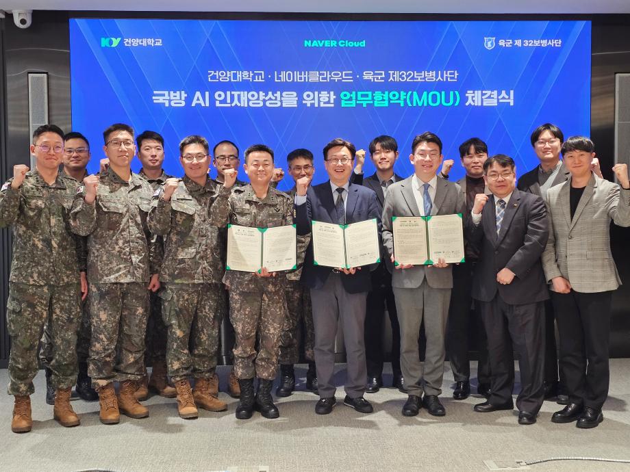 건양대·네이버클라우드·육군 32사단, 국방 AI 인재 양성 ‘산학군’ 협력 시동 국방 AI·SW 연구개발부터 교육콘텐츠 협력까지…지역 정주형 AX 융합인재 양성 본격화 건양대학교 AI·SW융합대학와 네이버클라우드, 육군 제32보병사단은 2026년 1월 19일 국방 AI 인재 양성을 위한 산·학·군 업무협약(MOU)을 체결하고, 국방 AI 기술 발전과 실전형 인재 양성을 위한 협력 체계를 본격적으로 가동한다. 협약에 따라 세 기관은 ▲국방 AI·SW 연구 및 개발 관련 인력·기능·인프라 구축 지원 ▲AI 기술의 국방 분야 적용을 위한 공동연구 및 프로그램 개발 ▲국방 분야 교육콘텐츠 및 의견 제공 ▲지역정주형 AX 융합인재 양성을 위한 공동 노력 ▲국방 미래전력 관련 연구 및 Test-Bed 역할 수행 등 다양한 분야에서 협력한다. 이번 협약은 단순한 업무 교류를 넘어, 대학의 AI 연구·교육 역량과 민간 클라우드 기업의 기술 인프라, 군의 실전 적용 환경을 하나의 체계로 연결했다는 점에서 의미가 크다. 즉, ‘AI 인재 양성(교육)–기술 개발(연구)–현장 적용(실증)’으로 이어지는 국방 AI 생태계를 구축해, 단기 교육 프로그램을 넘어 지속 가능한 협력 모델로 발전할 수 있는 기반을 마련할 수 있게 되었다. 특히 건양대학교가 축적해온 AI·SW 교육과정 운영 경험과 현장형 인재 양성 체계는 국방 분야에서 요구되는 데이터 기반 문제해결 능력과 실무형 역량을 강화하는 데 강점이 있다. 여기에 네이버클라우드의 클라우드 인프라 및 AI 서비스 역량이 결합되면서, 국방 AI 기술을 보다 안정적이고 확장 가능한 방식으로 실험·검증할 수 있는 환경이 마련된다. 이를 통해 교육 현장에서 개발된 AI 모델과 알고리즘이 실제 국방 현장 요구에 맞게 고도화되고, 군의 작전·행정·안전·정비 등 다양한 분야로 적용 가능성을 넓혀갈 수 있을 것으로 기대된다. 또한 육군 제32보병사단이 보유한 현장 경험과 운영 데이터를 바탕으로, 국방 특화 AI 활용 과제 발굴과 테스트베드 기반 실증을 함께 추진할 수 있다는 점에서 실효성이 높다. 군이 직면한 현실 과제를 중심으로 공동연구 및 프로그램을 설계함으로써, 연구 성과가 단순한 결과물에 머무르지 않고 현장 적용성과 확산 가능성까지 갖춘 ‘실전형 성과’로 이어질 수 있는 구조다. 나아가 세 기관은 지역 기반의 협력 체계를 통해 지역정주형 AX 융합인재 양성을 강화하고, 국방 AI 분야의 전문 인력이 지역에서 성장·정착할 수 있는 선순환 모델을 구축한다는 계획이다. 이는 국방과 산업, 대학이 함께 참여하는 협력 체계를 통해 지역 혁신과 국가 전략기술 경쟁력 강화를 동시에 실현하는 사례로 자리매김할 것으로 전망된다. 김용석 건양대학교 AI·SW융합대학장은 “이번 협약은 국방 AI 분야의 실전형 인재 양성과 연구 역량 강화를 위한 중요한 출발점”이라며 “대학의 교육·연구 기반과 네이버클라우드의 기술 역량, 육군 제32보병사단의 현장 경험이 결합돼 국방 AI 발전에 기여할 수 있도록 적극 추진하겠다”고 밝혔다.